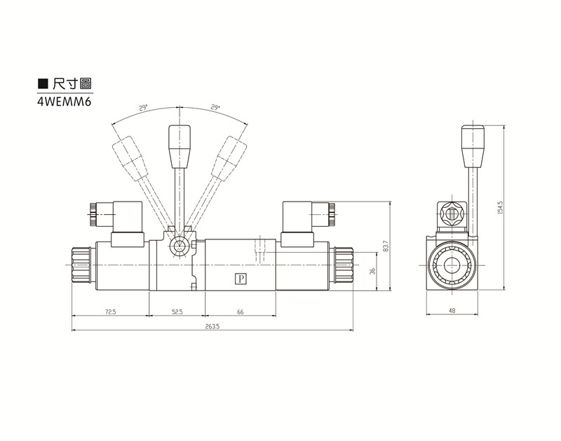 ● 此類閥允許在失電的情況下仍能通過輔助手柄進行換向