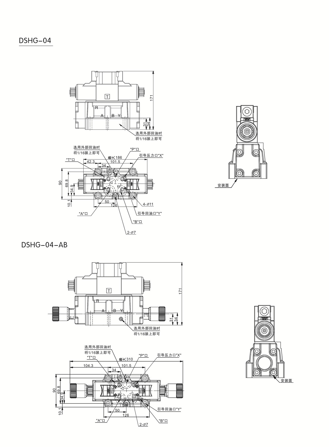 ● 電磁閥作先導(dǎo)閥,疊加在液動(dòng)閥上控制閥芯位移,