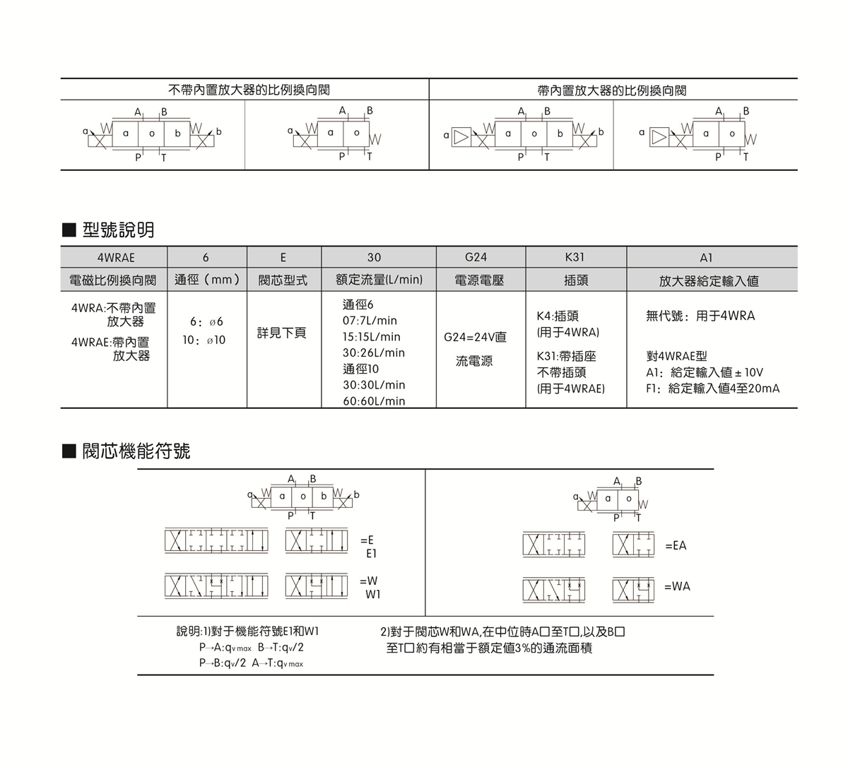 ● 4WRAE:帶集成式放大器 , 可與歐美同類型產品互換。