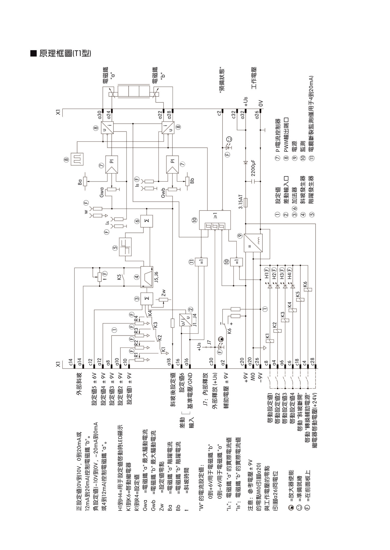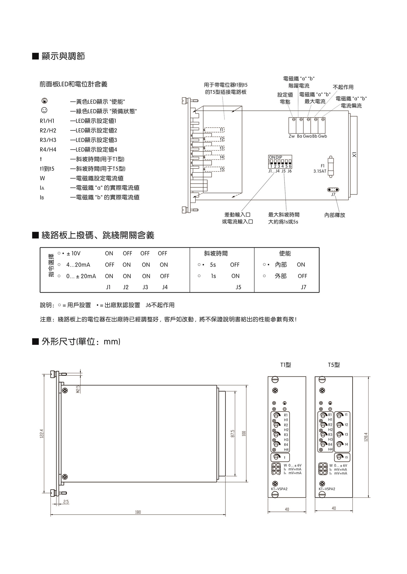 ● 帶有1個斜坡時間調(diào)節(jié)電位計(對T1型)或5個斜坡時間調(diào)節(jié)