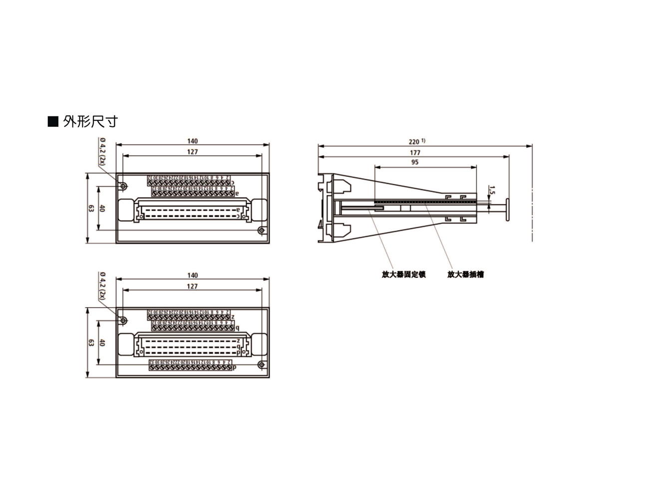 ● 支架定位孔或 35mm 標(biāo)準(zhǔn)導(dǎo)軌安裝于機(jī)箱或