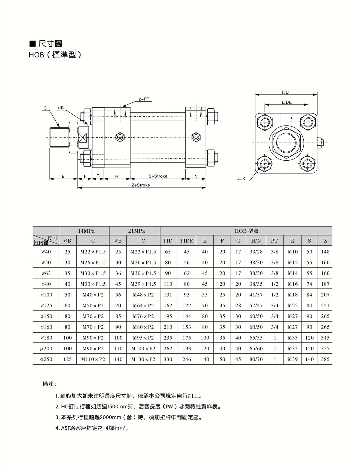方形重型油壓缸(14Mpa/21Mpa) HO