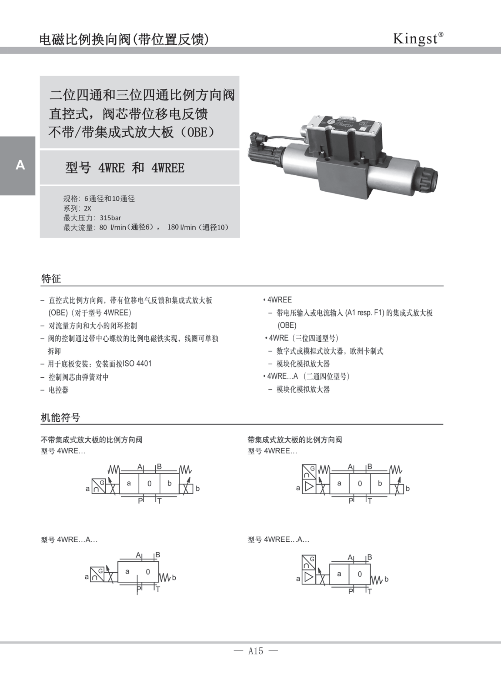 二位四通和三位四通比例方向閥直控式,閥芯帶位移電反饋,不帶/帶集成式放大板 (OBE)