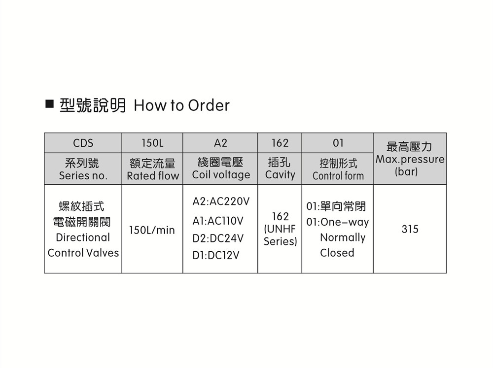 流量150L/min插孔C162最大工作壓力315bar內泄漏3滴/min (250bar)溫度-20~120°C文件下載