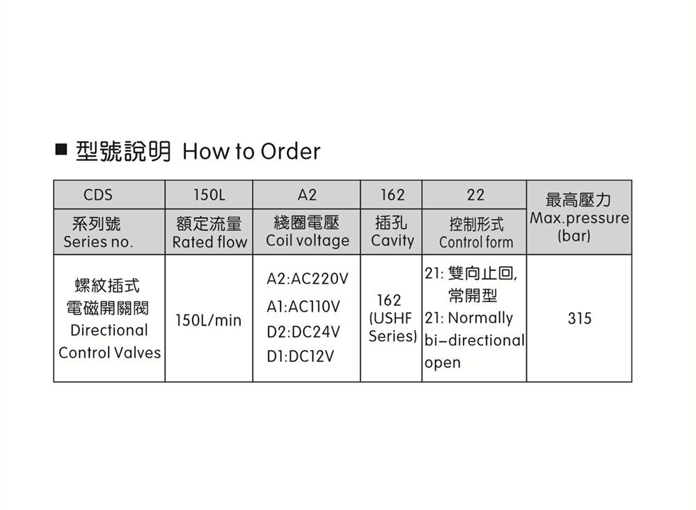 后 , 此閥截止油液雙向流動。* 額定流量:150L/miin