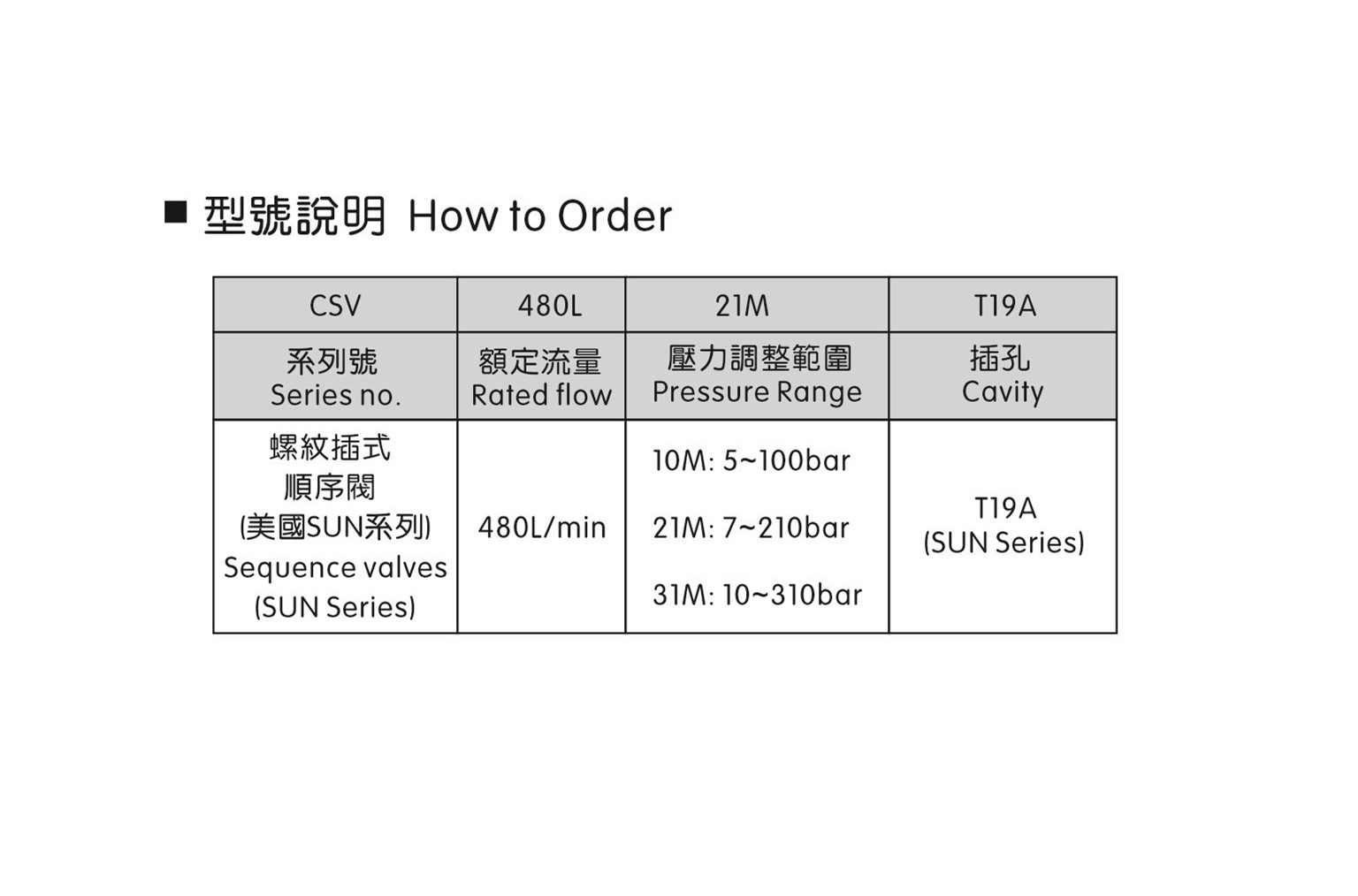 螺紋插裝式順序閥 CSV-480L-10M-T19A