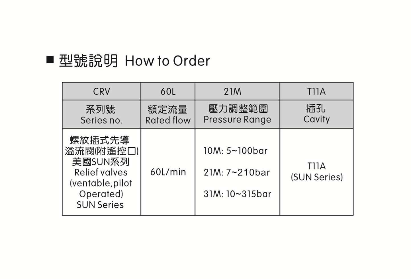 螺紋插裝式溢流閥 CRV-60L-31M-T11A